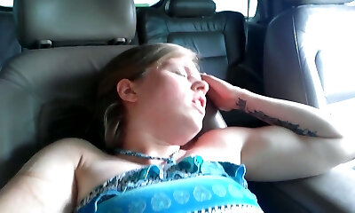 They get a huge funbags girl in the car to film her banging