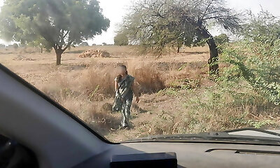 Desperate woman pee in car
