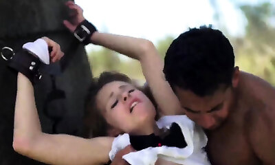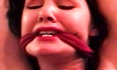 Busty cutie Whayes got wooden gag in her mouth got bounded by mischievous master