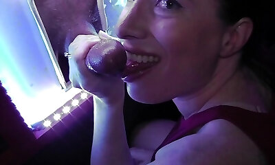 Thigh boots lipstick milf deepthroats at mirror gloryhole