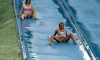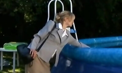 Blondie mega-bitch with big tits gets fucked in an inflatable pool