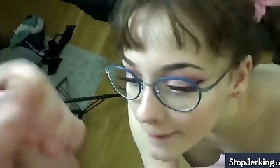 Random fledgling sucks her dude until he covers her in cum
