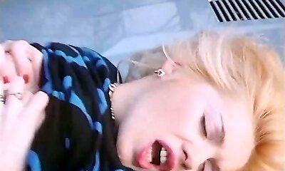 Young looking blondie cutie gives nice blowjob at the bangbus