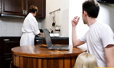 Lady is cleaning house while stepson is fucking stepsister