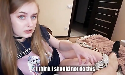 Slim stepdaughter gives footjob and pleads to fuck her hard - Pov