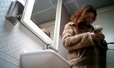 Some stranger Asian nymphs in the public toilet room filmed on webcam