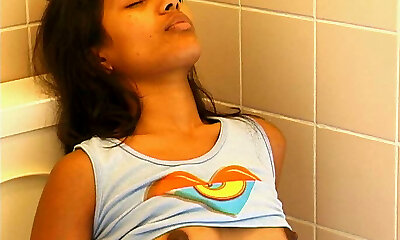 Juggy Asian babe is masturbating soaking pussy in the toilet