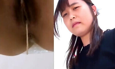 Asian girl with hairy pussy spied in rest room pissing